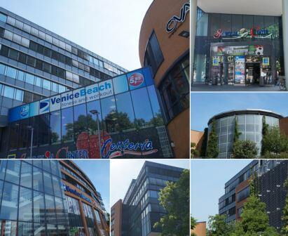 Die Eröffnung des Scheck-In Centers war der Startschuss zur Urbanisierung eines 330.000 m² großen Gebietes. Zusammen mit vielen kleineren Geschäften entstand mit einer Verkaufsfläche von ca. 5.000 m² ein sich über 2 Etagen erstreckender Supermarkt mit einem hochwertigen Warenangebot. Ein 2.300 m² großes Fitnessstudio sowie das im „Gastro-Ei“ angesiedelte Restaurant runden das Angebot ab. Ein Parkhaus mit 610 Plätzen stellt genügend Platz für alle Besucher und Angestellten der Büros bereit, die sich ebenfalls im Gebäudekomplex befinden.